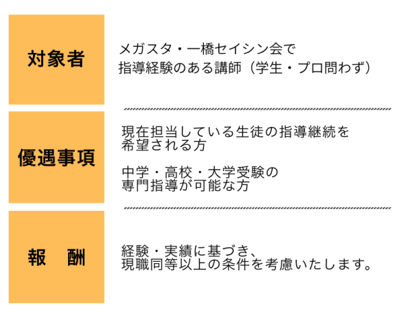 「先生、その情熱をここで止めてはいけない。」 株式会社バンザン(メガスタ・一橋セイシン会)在籍講師の皆様へ