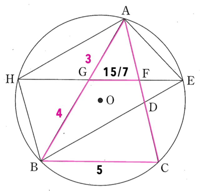 解説 : △AGF∽△ABCより、GF:BC=3:7より、GF:5cm=3:7