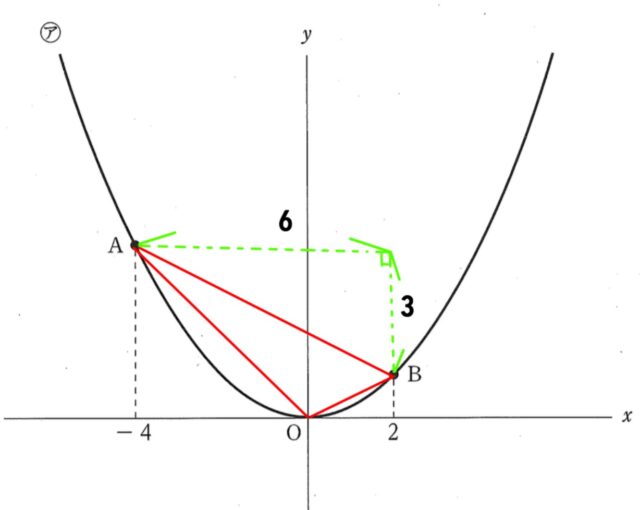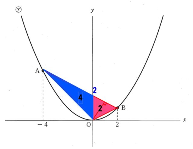 よって、三角形OABの面積は、4+2=6