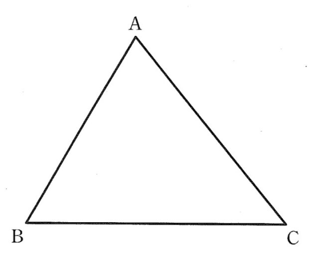 1-12:次の図で、△ABCの2つの頂点B, Cを通る円のうち、中心が∠ABCの二等分線上にある円を、定規とコンパスを用いて作図しなさい。なお、作図に用いた線は消さずに残しておきなさい。
