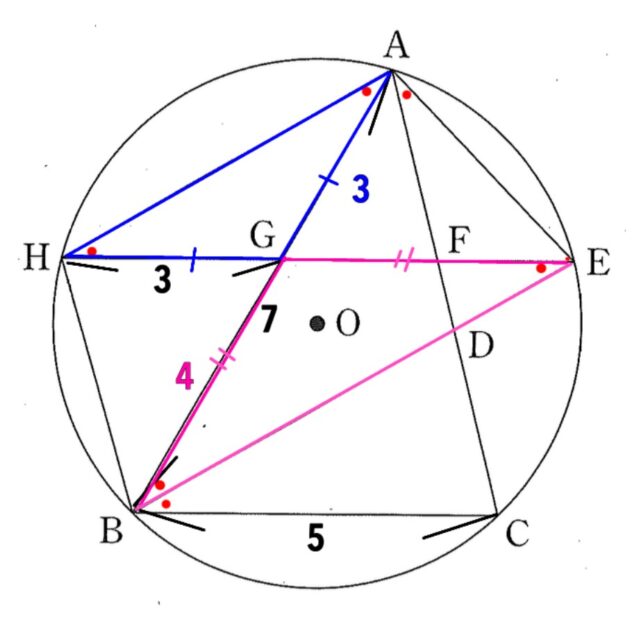 図より、△GAHは二等辺三角形なので、辺AG=辺GH=3cm