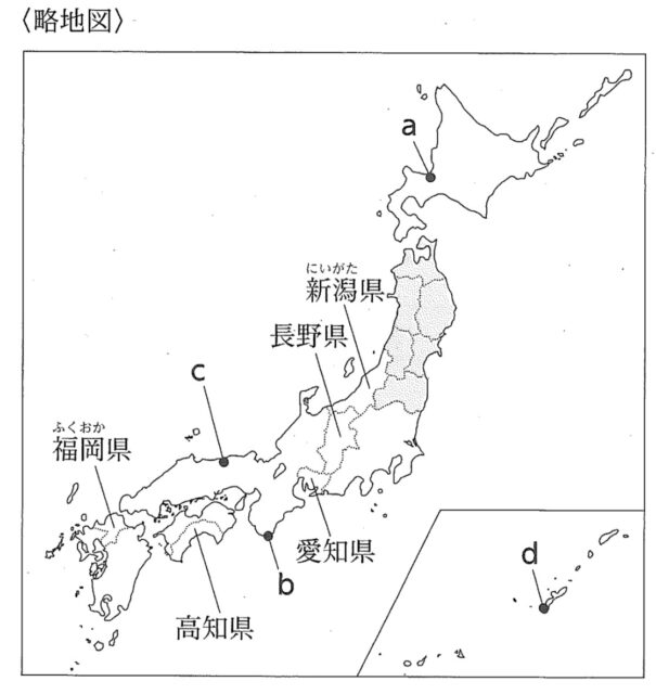 次の略地図を見て、あとの各問いに答えなさい。