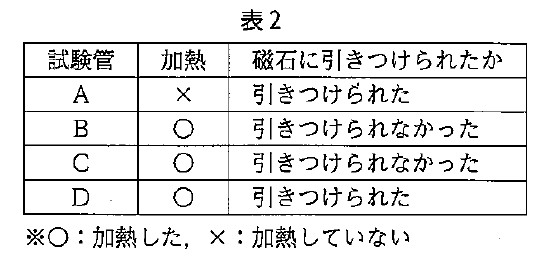 2-2(2):金属Aの種類として、最も適当なものを表1の中から1つ選び、物質名で答えなさい。