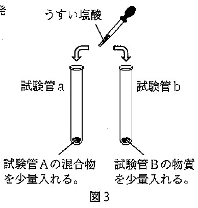 ウ 金属などのかたいものを入れるときは、垂直に立てたメスシリンダーの真上から手を離し、落下させて入れる。