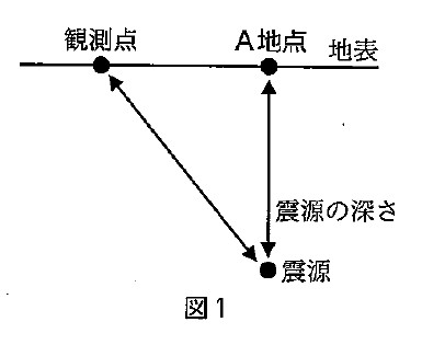 図1において、地震が発生した場所を震源といい、その真上のA地点(地表の位置)を( )という。