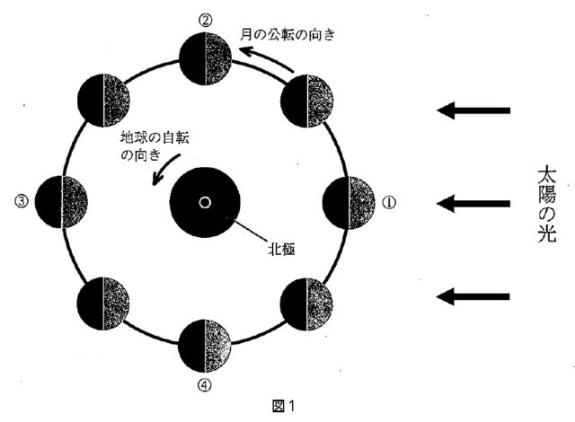 解説 : ①、②、③、④それぞれの、月の見え方について考える。