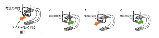 選択肢の中で、コイルが動く向きが図6と同じになるものは、選択肢イだとわかる。