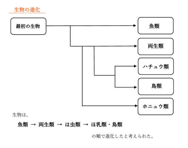 解説 : 生物の進化の流れは、以下のようになっている。