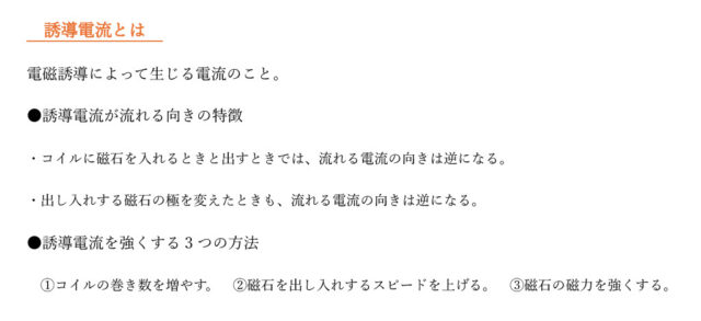 3-1:磁石を動かすことでコイルの中の磁界が変化すると、その変化にともなって電圧が生じ、コイルに電流が流れる。この電流のことを何というか答えなさい。