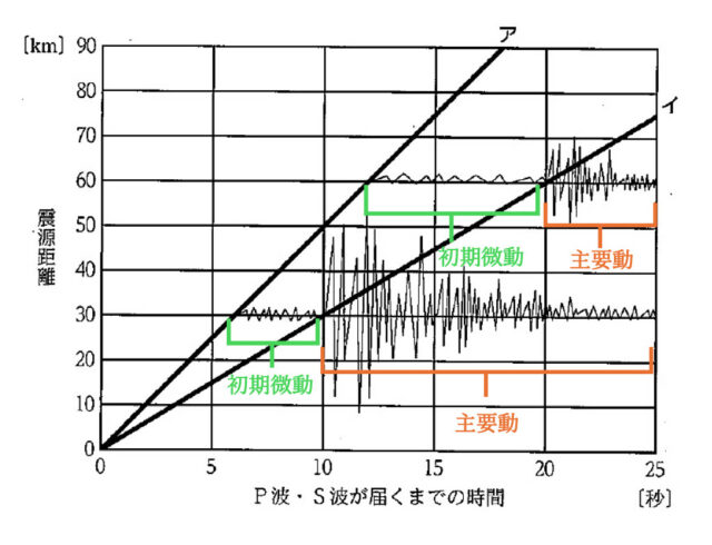 解説 : 問題文中のP波は初期微動、S波は主要動である。
