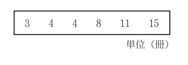 解説 : 範囲は最大値から最小値を引いたものより, 15−3=12 (冊)
